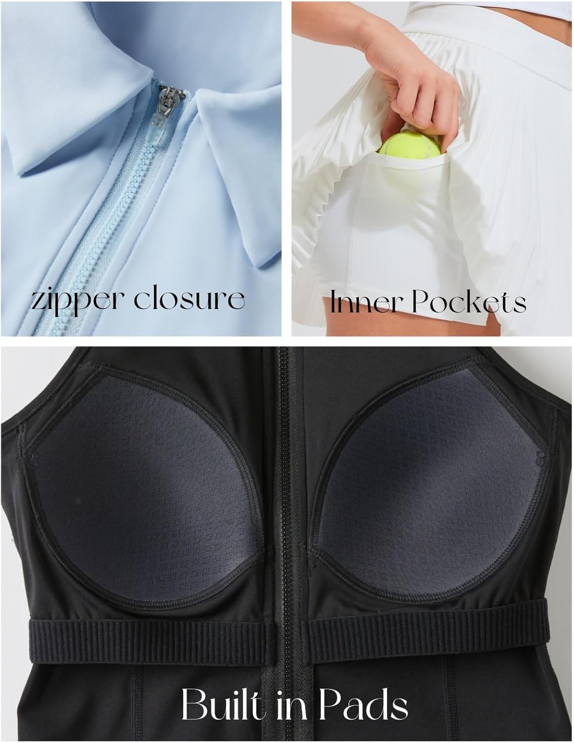 The video showcases the product in use.The video guides you through product setup.The video compares multiple products.The video shows the product being unpacked. tennis skirt set Merchant Video