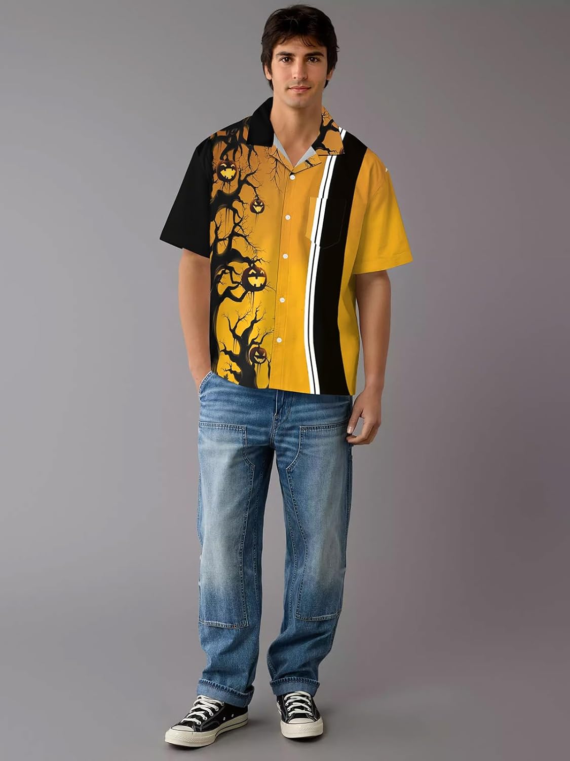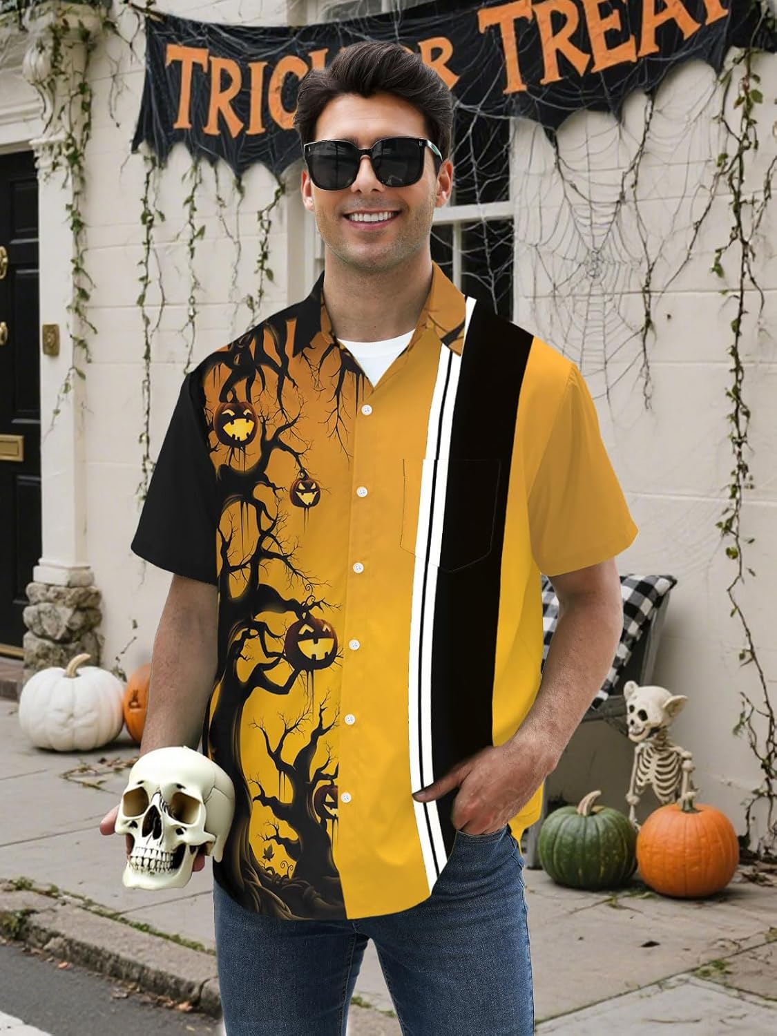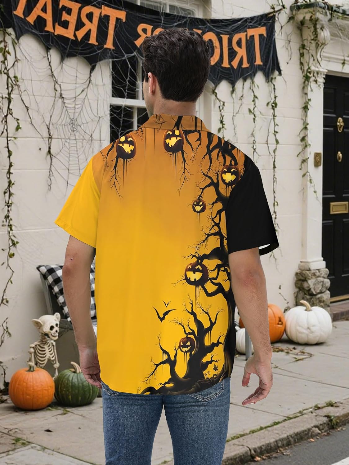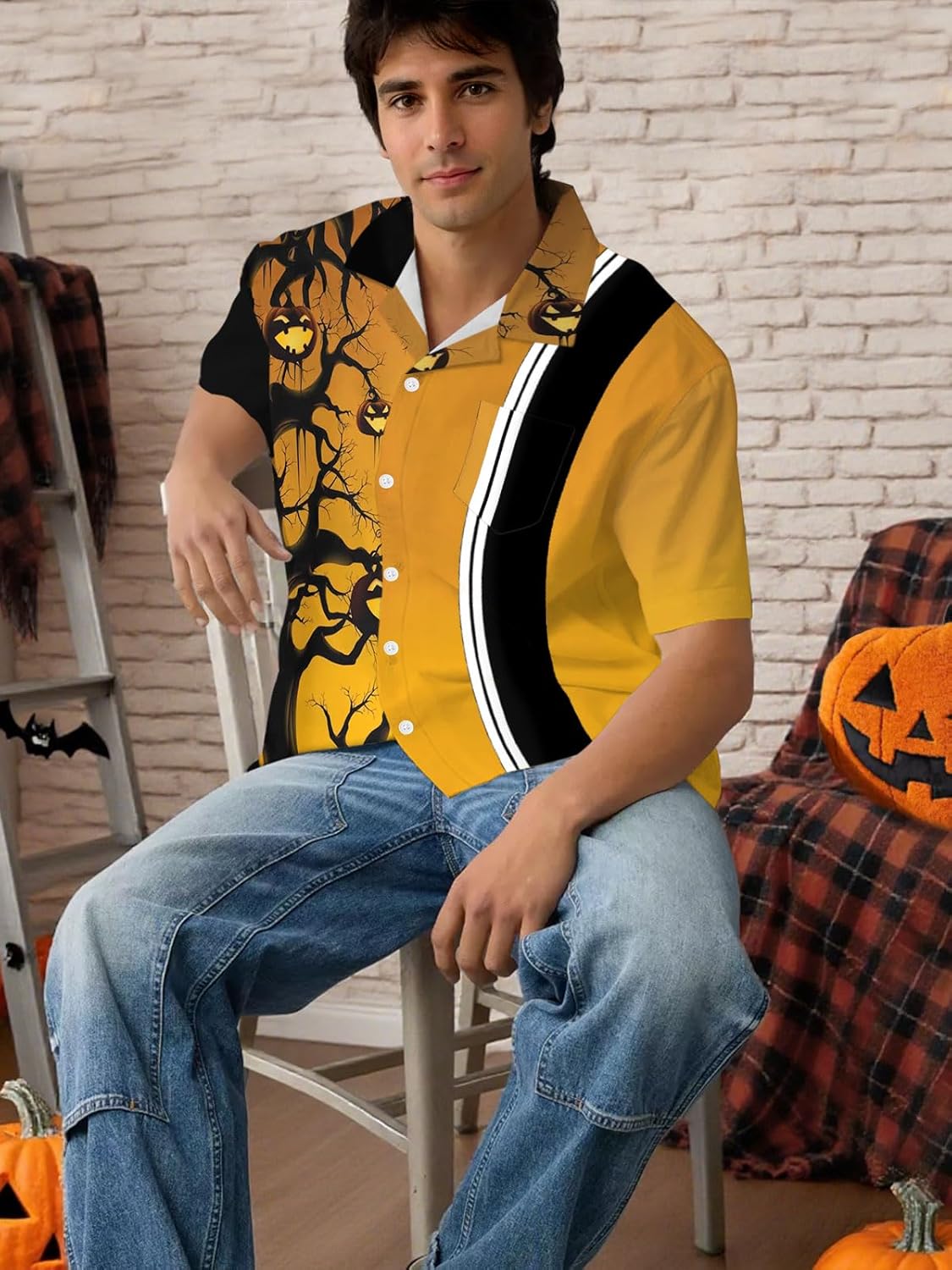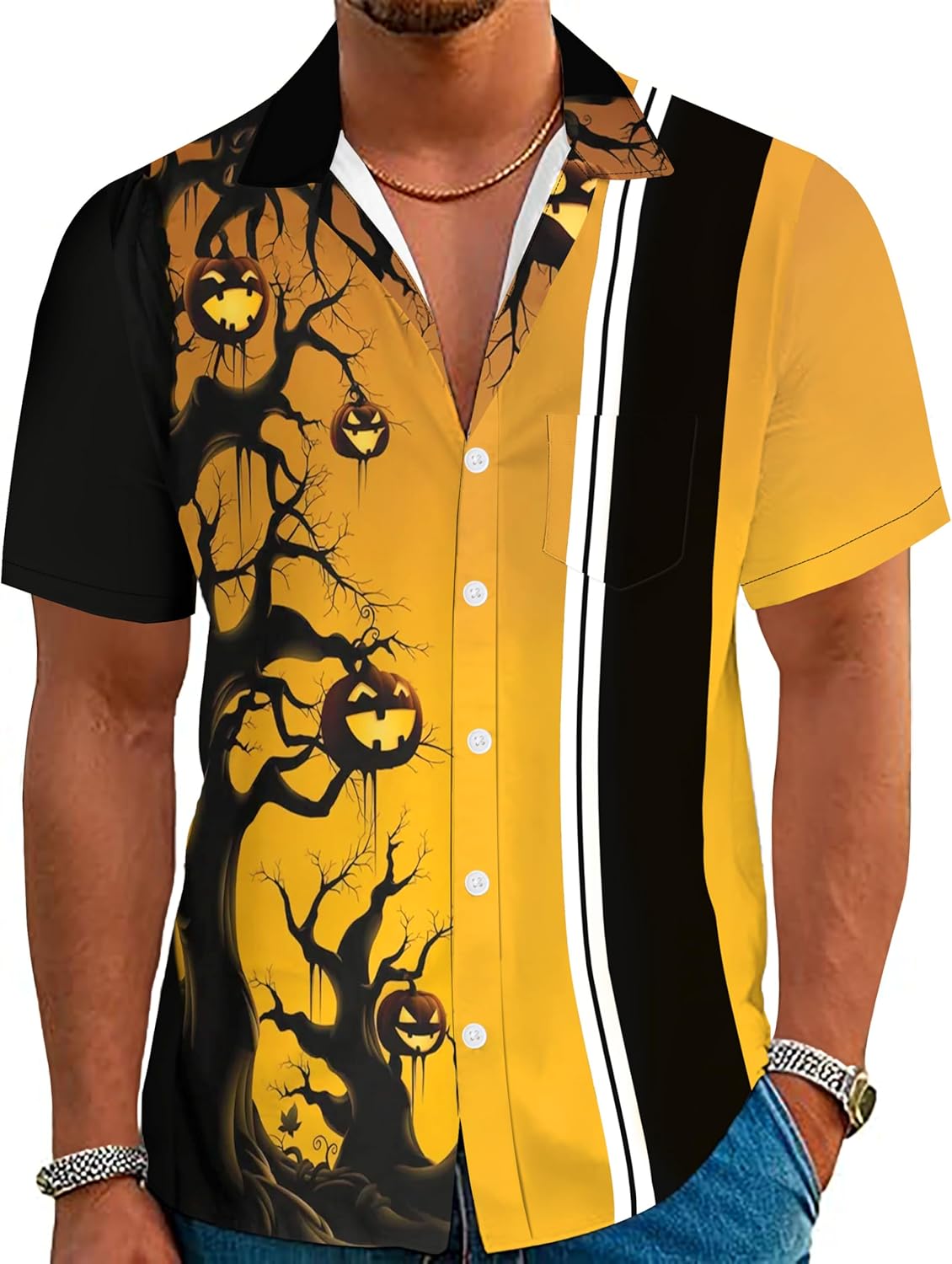 YZMI Halloween Button up Shirts for Men Pumpkin Short Sleeve Tee