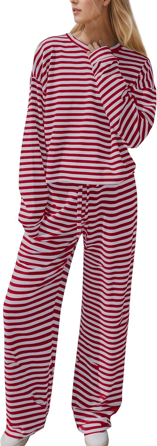 Striped lounge sets for women, 2 piece pajama sets for women, Womens striped two piece outfits, Fall winter outfits, Cute striped pajama pants sets, Sleep Sets