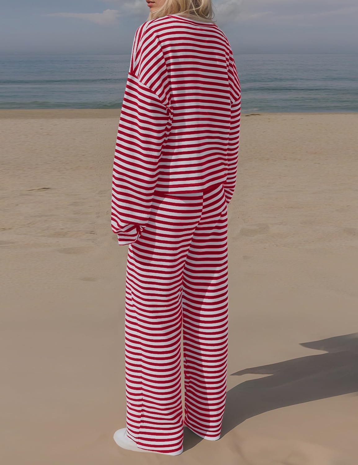 Striped pullover Tops and wide leg pants pajama outfits, womens 2 piece lounge outfits, striped sweat sets for women, teen girls striped tracksuits sets, sweatsuits sets women 2 piece outfits