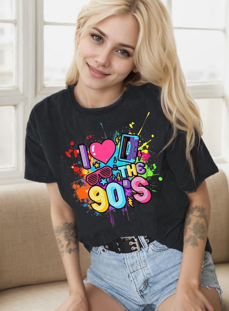 Customers find the 90s-themed shirt to be of great quality, cute, and comfortable, with a perfect fit and soft material. They like the theme, with one customer mentioning it’s perfect for a 90s-themed dance. Regarding size, while some find it true to size, others note it runs small.