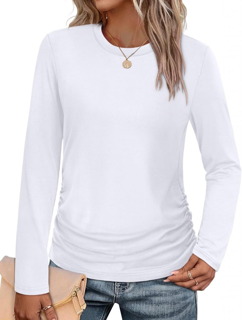 shirtSAMPEEL Long Sleeve Shirts for Women Ruched Fall Tops Crew Neck T Shirts Fashion Clothing 2025 admin / 23 October 2025