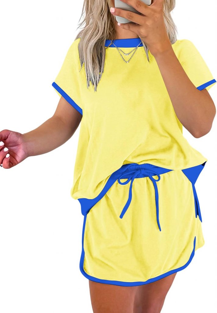 shirtSELINK Lounge Sets for Women 2 Piece Skirt Colorblock Drop Shoulder T Shirt and Skort Set Summer Tracksuits admin / 23 October 2025